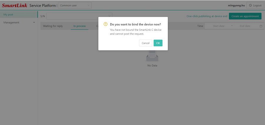 Depois de fazer login na plataforma de serviço remoto smartlink, ative a função de diagnóstico remoto do conector Smartlink.