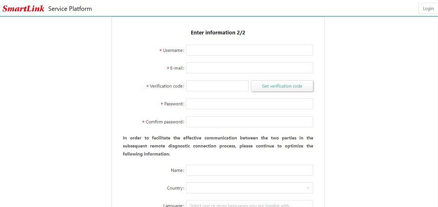 Para ativar a função de diagnóstico remoto Smartlink, você precisa acessarhttp://smartlink.x431.com/através do aplicativo ou através de um navegador.