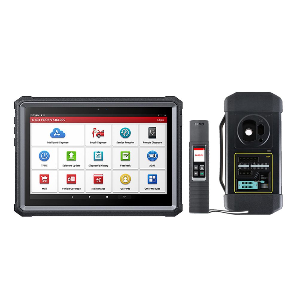 Lançar o scanner completo do sistema X431 Pro5 com o programador chave X-PROG3 e a ferramenta TPMS TSGUN
